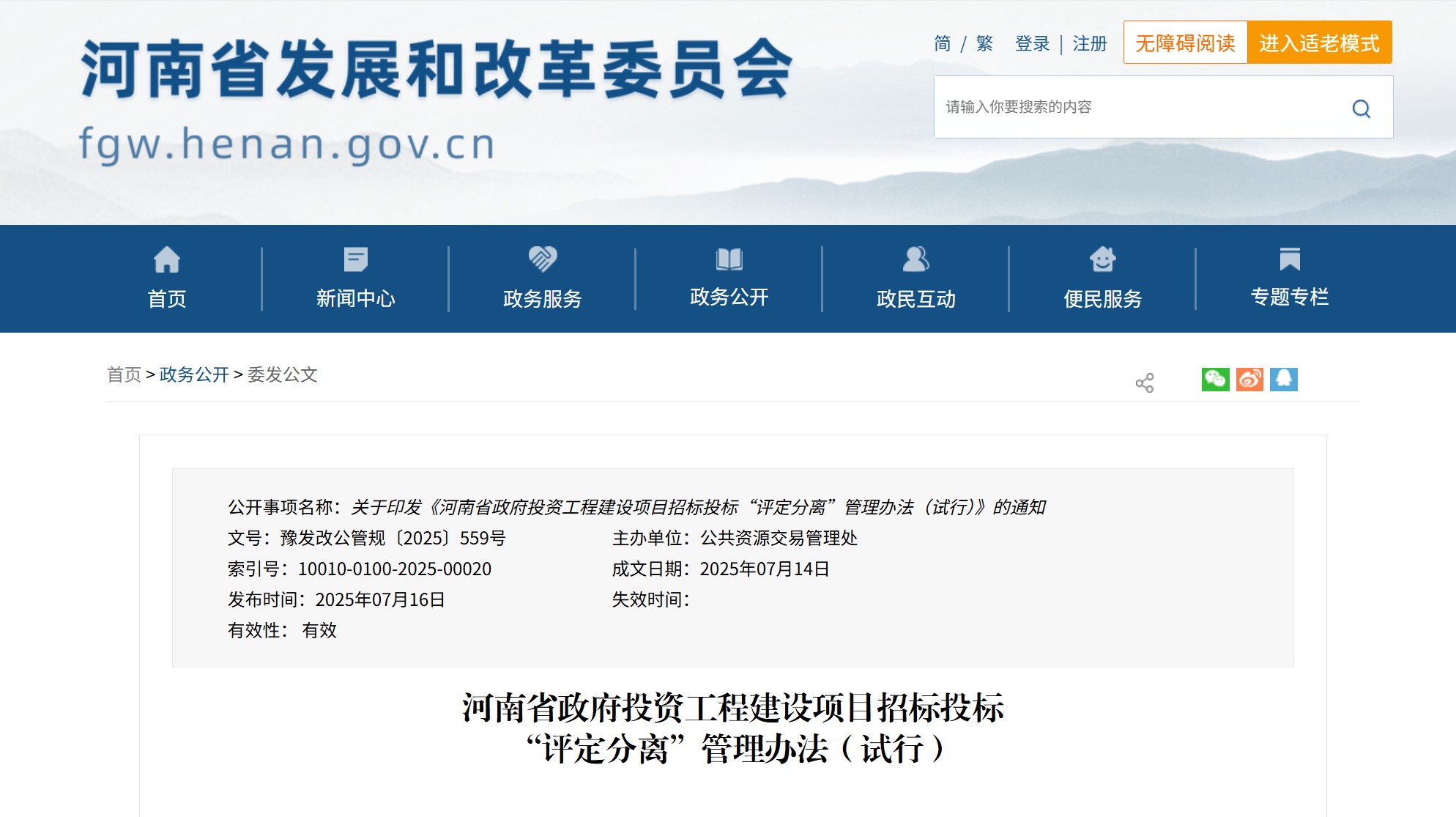 河南省發(fā)布《河南省政府投資工程建設(shè)項(xiàng)目招標(biāo)投標(biāo)“評定分離”管理辦法(試行)》
